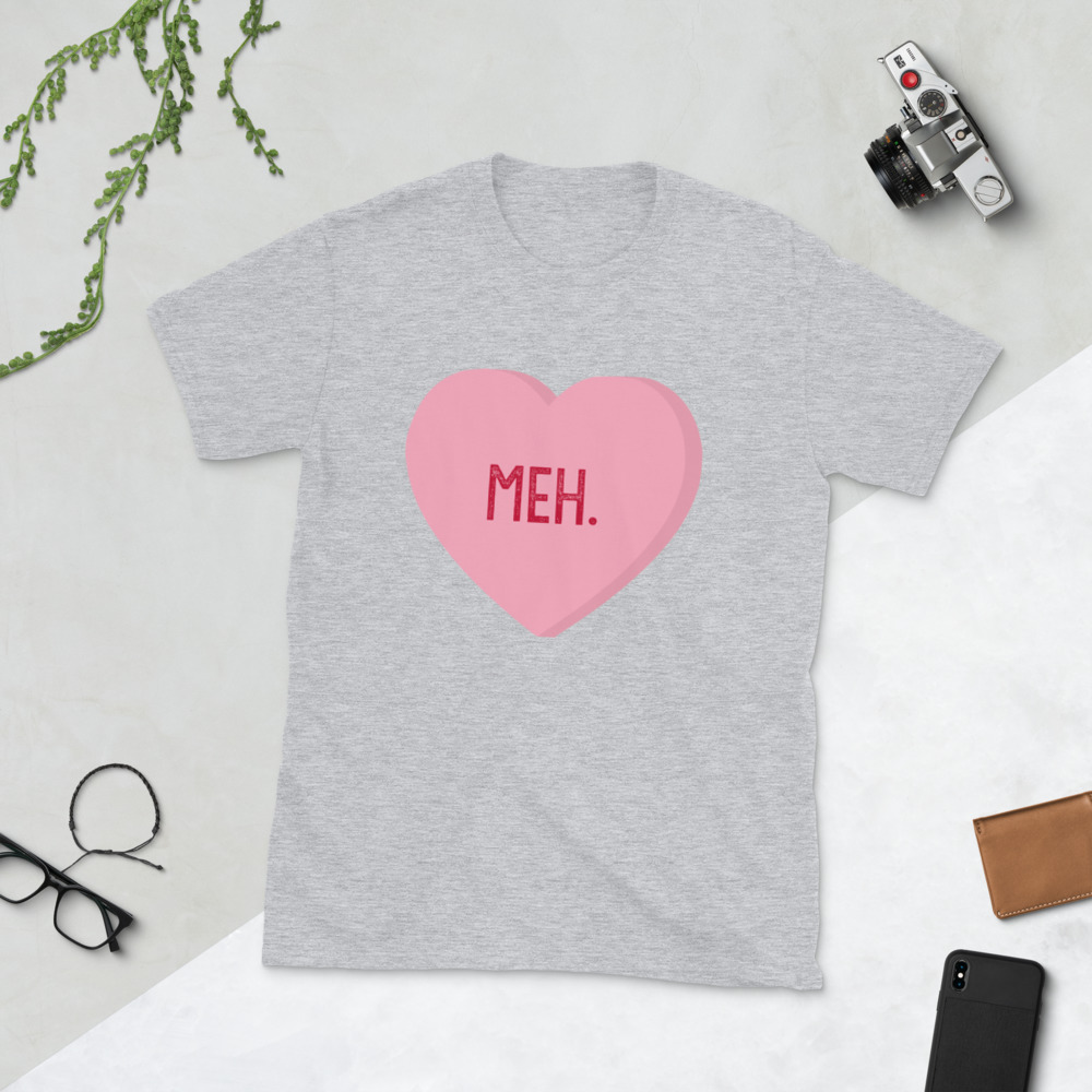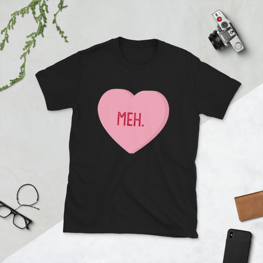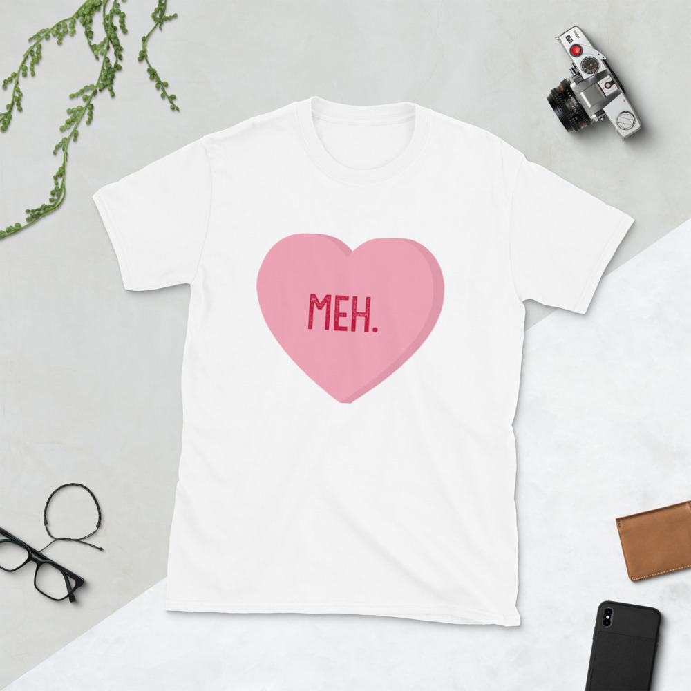 Meh. Candy Heart Anti Valentines Day Cupid Love Holiday Funny Sayings Gift Idea Romance Romantic Men's T-shirt SF-0450 Short-Sleeve Unisex T-Shirt