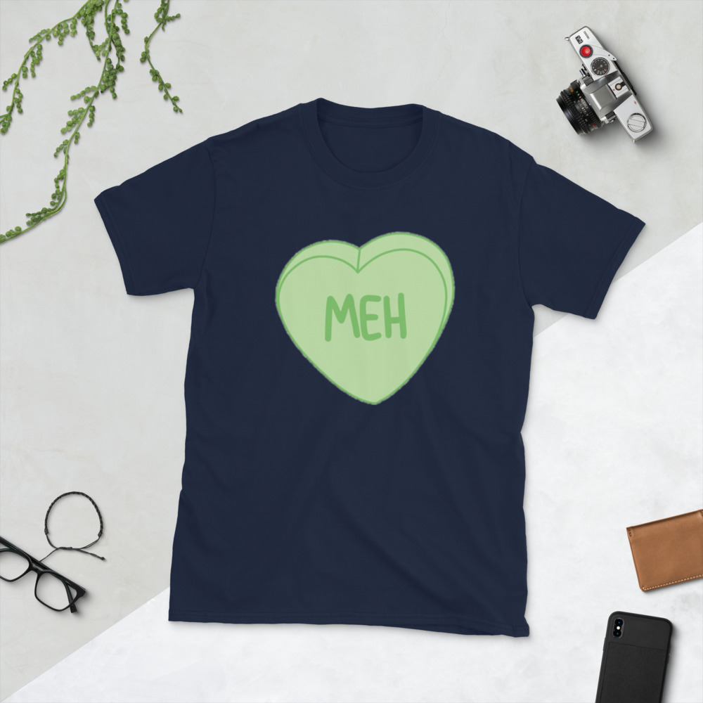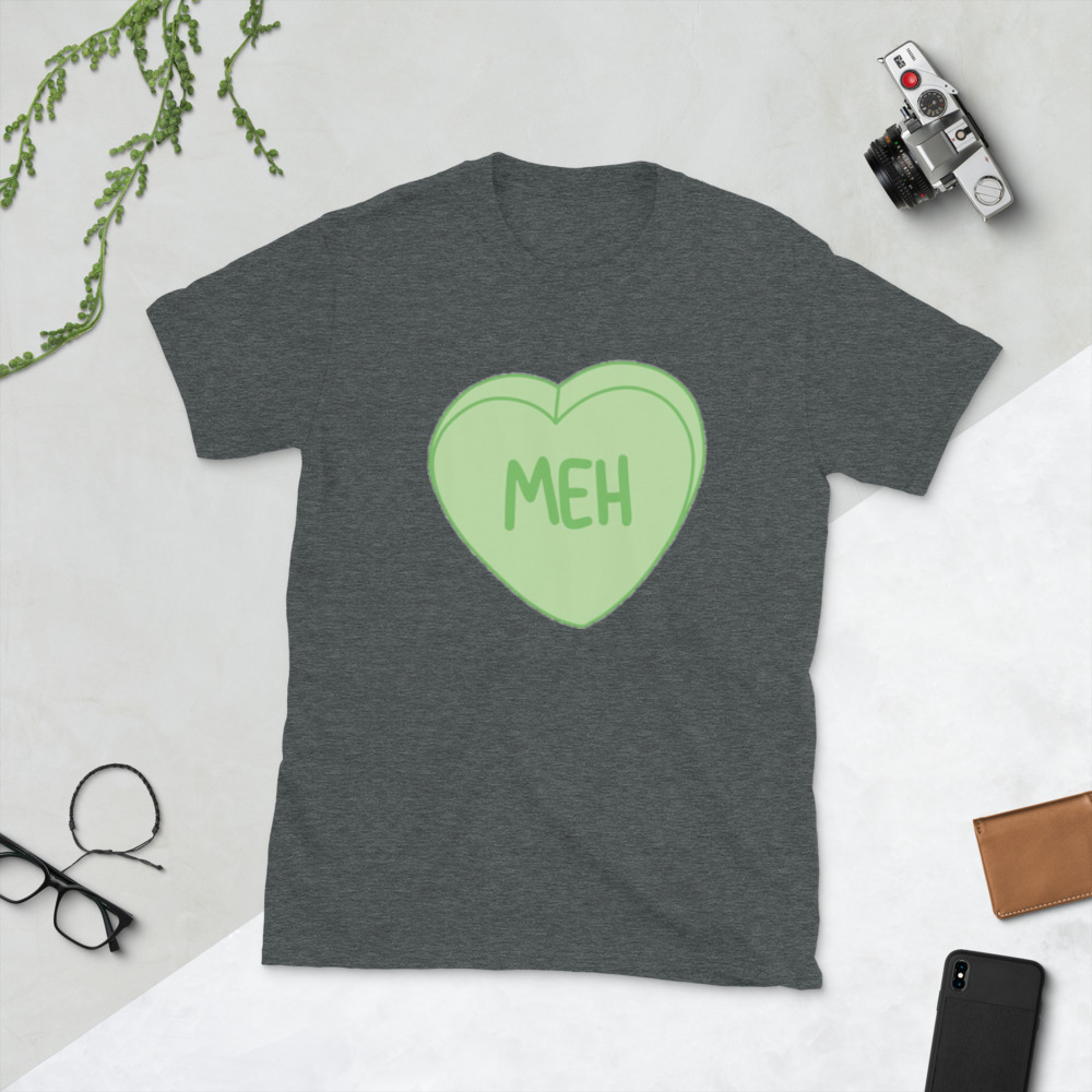 Meh. Candy Heart Anti Valentines Day Cupid Love Holiday Funny Sayings Gift Idea Romance Romantic Men's T-shirt SF-0450 Short-Sleeve Unisex T-Shirt