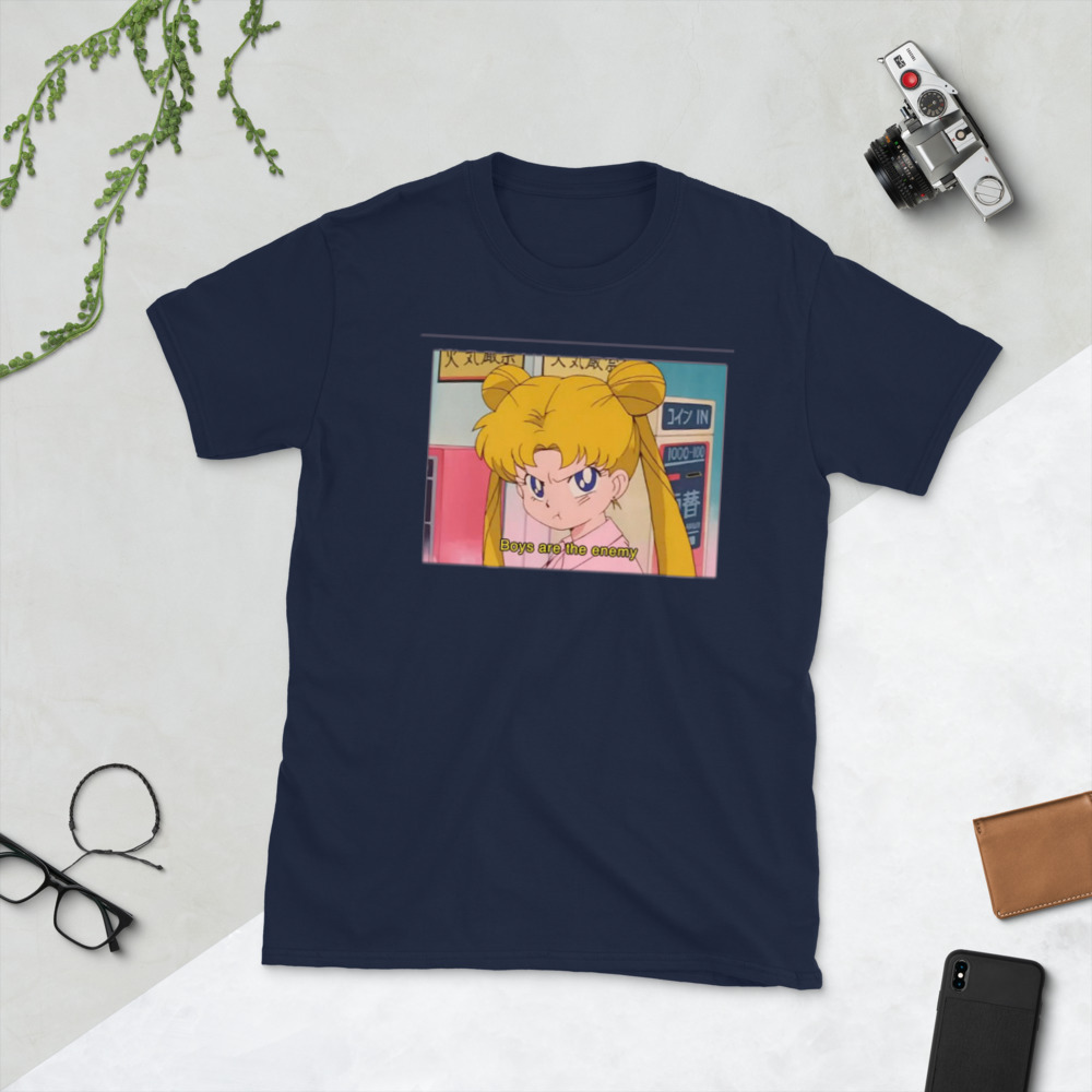 Free Shipping*BOYS ARE THE ENEMY tee Sailor Moon Boys Are The enemy Funny, Unisex , Anime, T-Shirt
