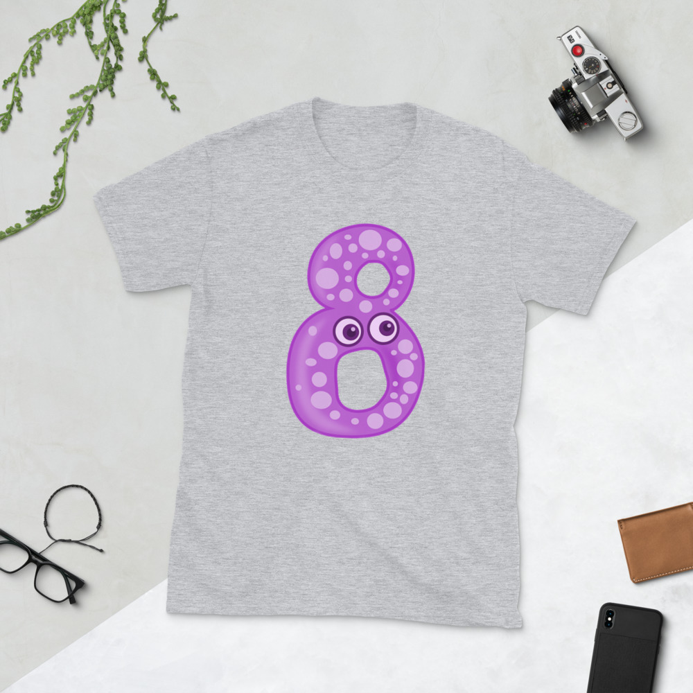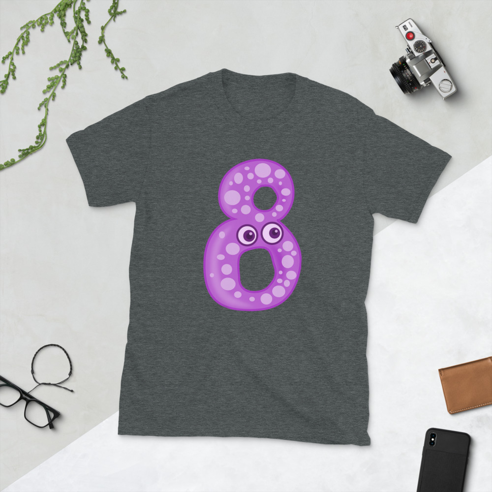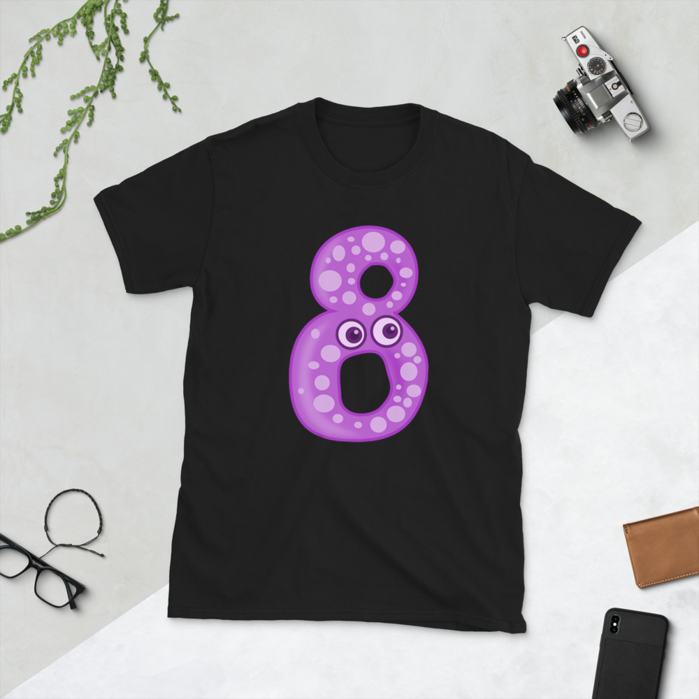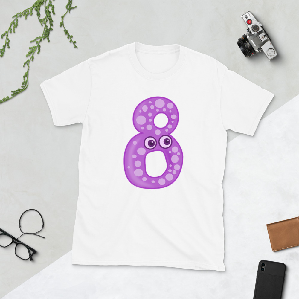 purple 8 cartoon,Boy's Birthday Shirt, Personalized Childrens Number T-Shirt, 1st 2nd 3rd 4th 5th 6th 7th 8th 9th Short-Sleeve Unisex T-Shirt